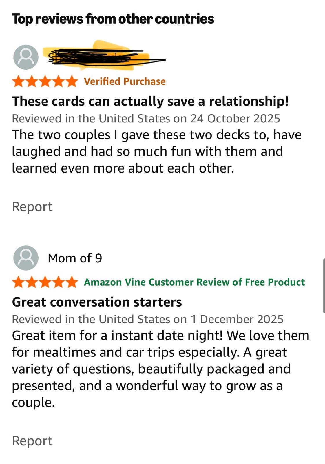 💑 STRENGTHEN YOUR RELATIONSHIP – Whether you're in a new romance or a long-term commitment, this couples card game fosters emotional intimacy, connection, and trust.